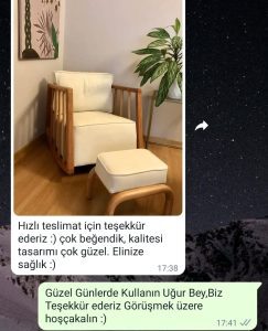 İzmirdeki evimiz için Siparişimizi titizlikle aldılar, isteklerimizi tek tek teklif formuna yazıp tarafımıza onaya sunduktan sonra üretime aldılar. Tam söylendiği tarihte teslim ettiler, paketlemesi çok başarılı geldi. Koltuğun konforu görseldeki gibi aşırı rahat. İşini güzel yapan her zaman kazanıyor. Elinize sağlık.